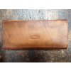 Dámská kožená peněženka z pravé hovězí ručně barvené kůže. Peněženka obsahuje komory na papírové bankovky, přihrádky na karty a kapsu na kovové mince. Je tónovaná do starobylého vzhledu s patinou.