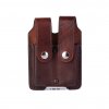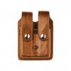 Kožená sumka na dva zásobníky vyrobena z kvalitní hovězí kůže. Ručně barvená, ručně tvarovaná. Opatřena dvěma šrouby pro nastavení svěrné síly při tasení zásobníků. Na zadní straně je opatřena průvlekem. Při objednávce uveďte parametry- všechny tři rozměry zásobníku včetně nábojů..