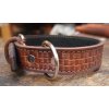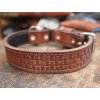 Kožený obojek na psa, 4 cm široký, zhotovený z pravé hovězí třísločiněné kůže z české koželužny. Obojek má i s podšívkou asi 6 mm. Podšívka je velurová, buď hovězí nebo vepřovicová. Obojek KM Saddlery je šperkem pro všechny psí společníky. Je ručně zdobený vzorem basket. Do obojku je možné vyrazit jméno nebo monogram. Kování je ocelové, polokroužek svařovaný, bezpečný. S tímto obojkem uděláte radost psovi i sobě.