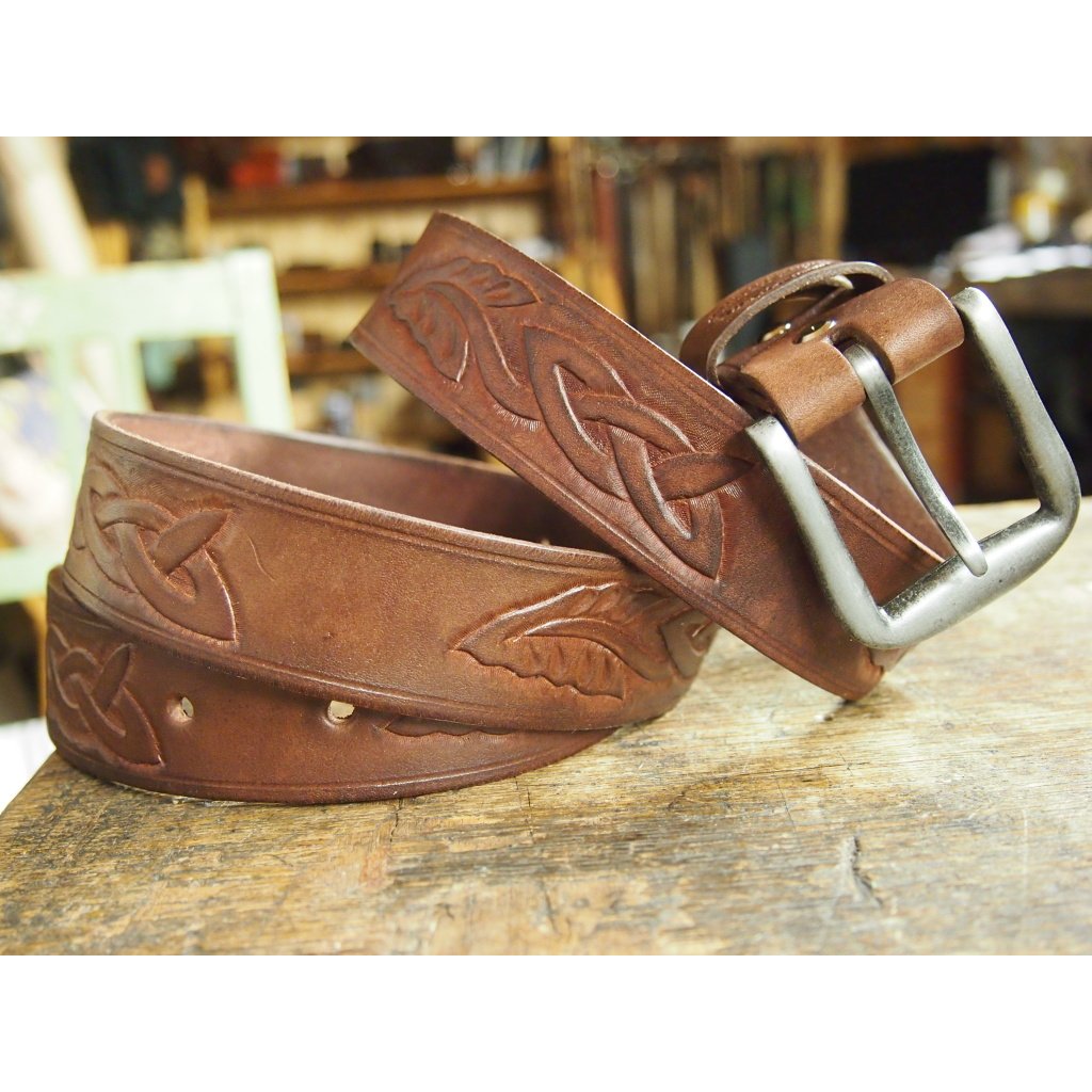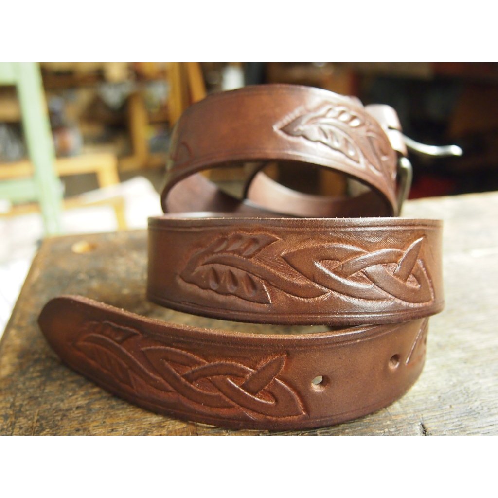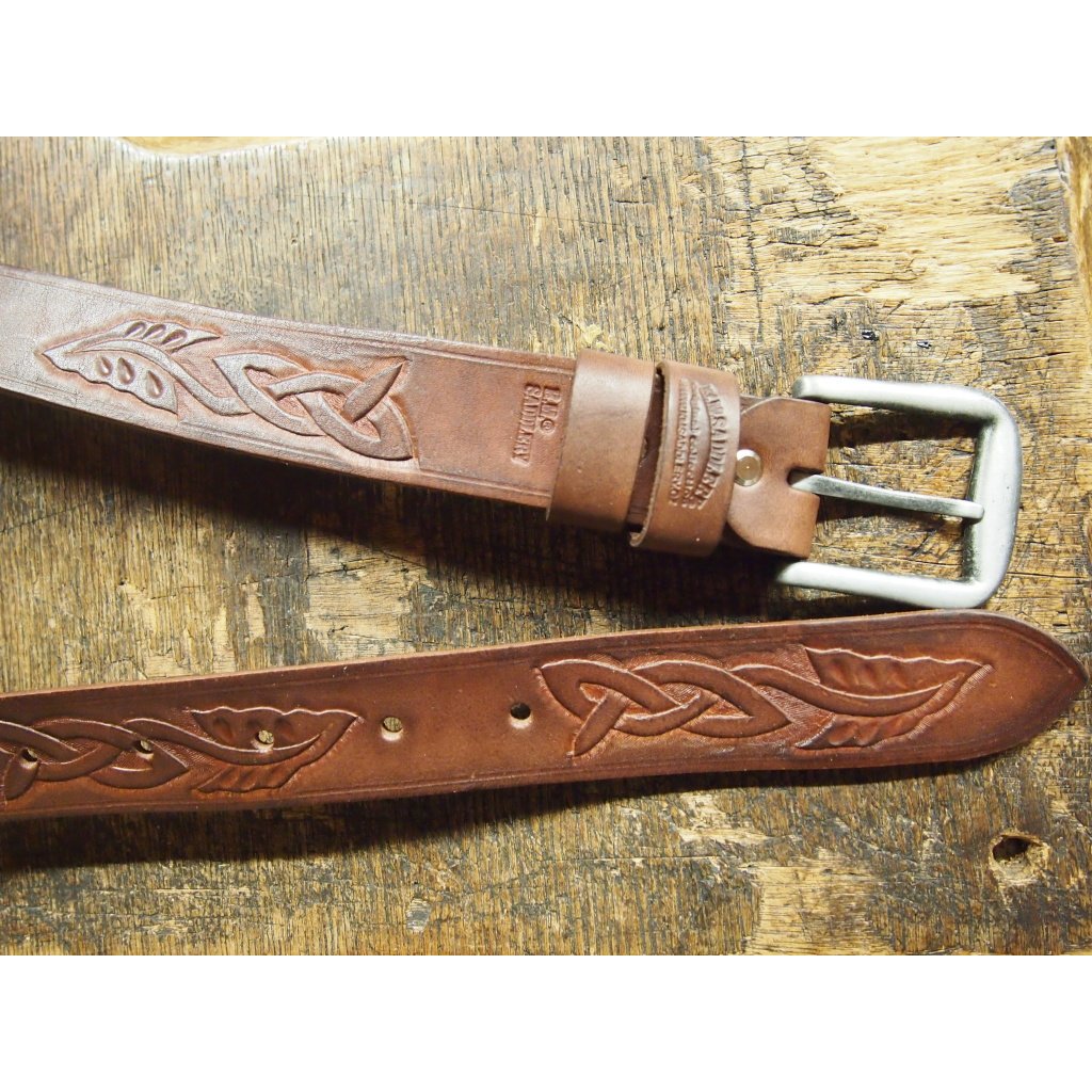 Kožený opasek z pravé hovězí kůže o síle 4,2 mm. Je ručně barvený a zdobený tepaným vzorem do kůže. Je to opasek velmi zdobný a originální svým keltským motivem motivem. Opasek je opatřen pěknou opaskovou přezkou.