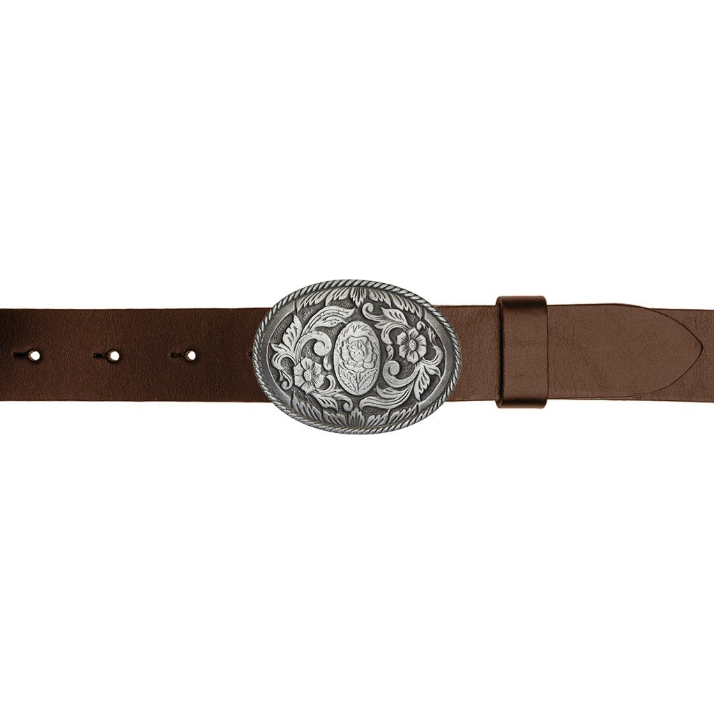 Kožený opasek K.M.Saddlery zhotovený z kvalitní hovězí kůže o síle 4,2 mm a šířce opasku 4 cm. Opasek je ozdoben velmi pěknou sponou s květinovým motivem dle výběru .Kůže opasku je při nošení velmi příjemná, nošením získává patinu a měkkost spojenou s pevností. Jde o probarvený opasek v koželužně. Kvalita kůže je stejná jako u ručně barveného, pouze povrch je jednolitý, není poznat přirozená struktura opasku. Opasek je již od začátku vláčný.