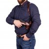 Samosvorné podpažní výklopné pouzdro, které zajišťuje velmi rychlé tasení zbraně, tzn.odpadá odepínání jakéhokoliv jištění zbraně. Pouzdro je navržené tak, že při vytahování a zasouvání zbraň nepřichází do přímého styku se svěrnými a třecími plochami, takže se neodírá. Je vyrobeno z kvalitní hovězí kůže o síle 3,1-3,3 mm.To to pouzdro je vhodné pro velké a těžké zbraně.Váha zbraně se rozloží na ramenní závěs a na svěrný klip který se upne za opasek.Při objednávce uveďte typ zbraně,vaši výšku a obvod hrudníku.